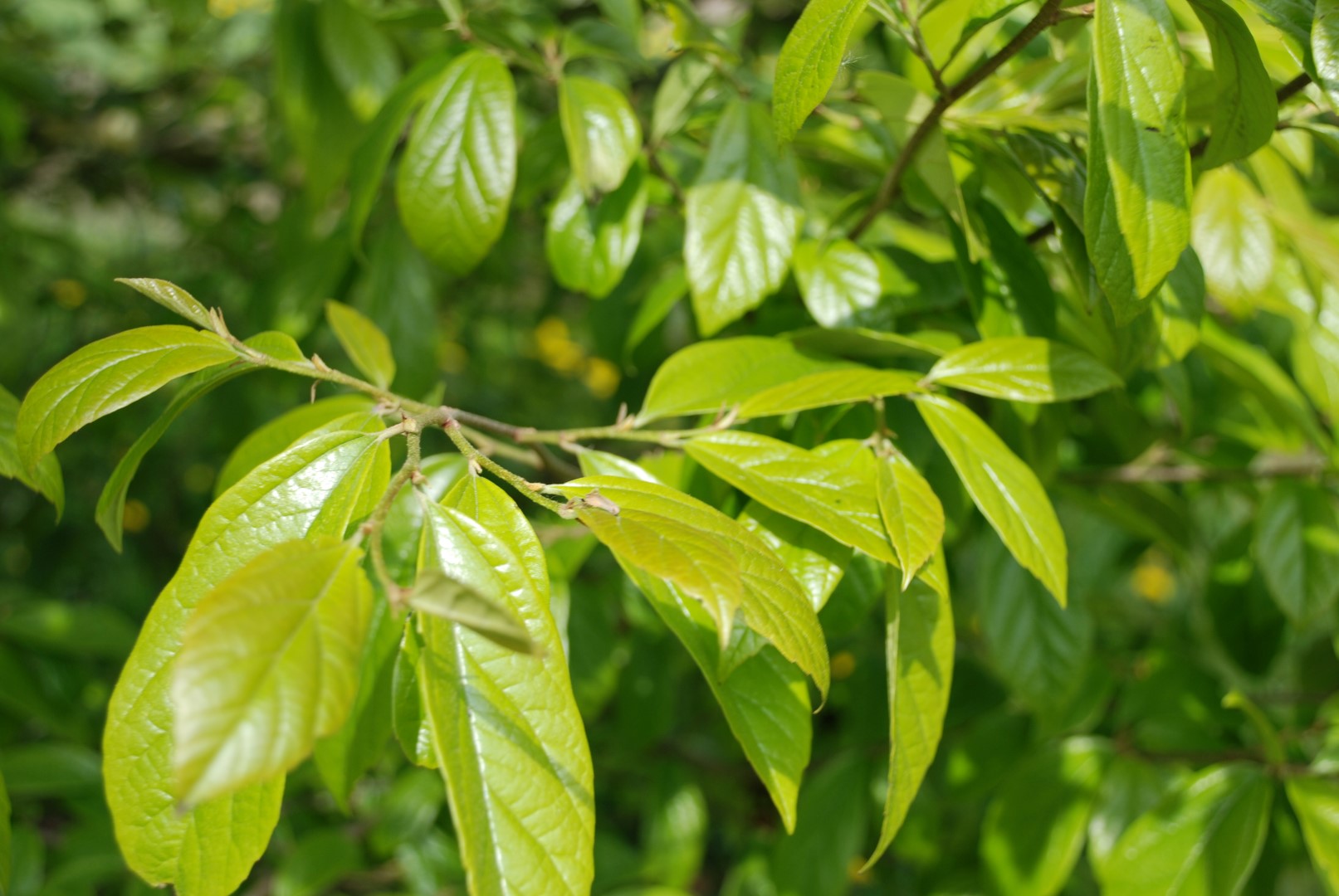 De bladeren van de Sycoparrotia semidecidua 'Prins Claus' kleuren in de herfst geel.