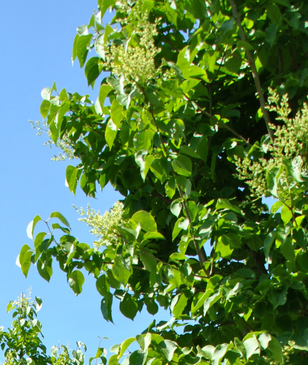 Syringa reticulata 'Ivory Silk' bloeit in juni.