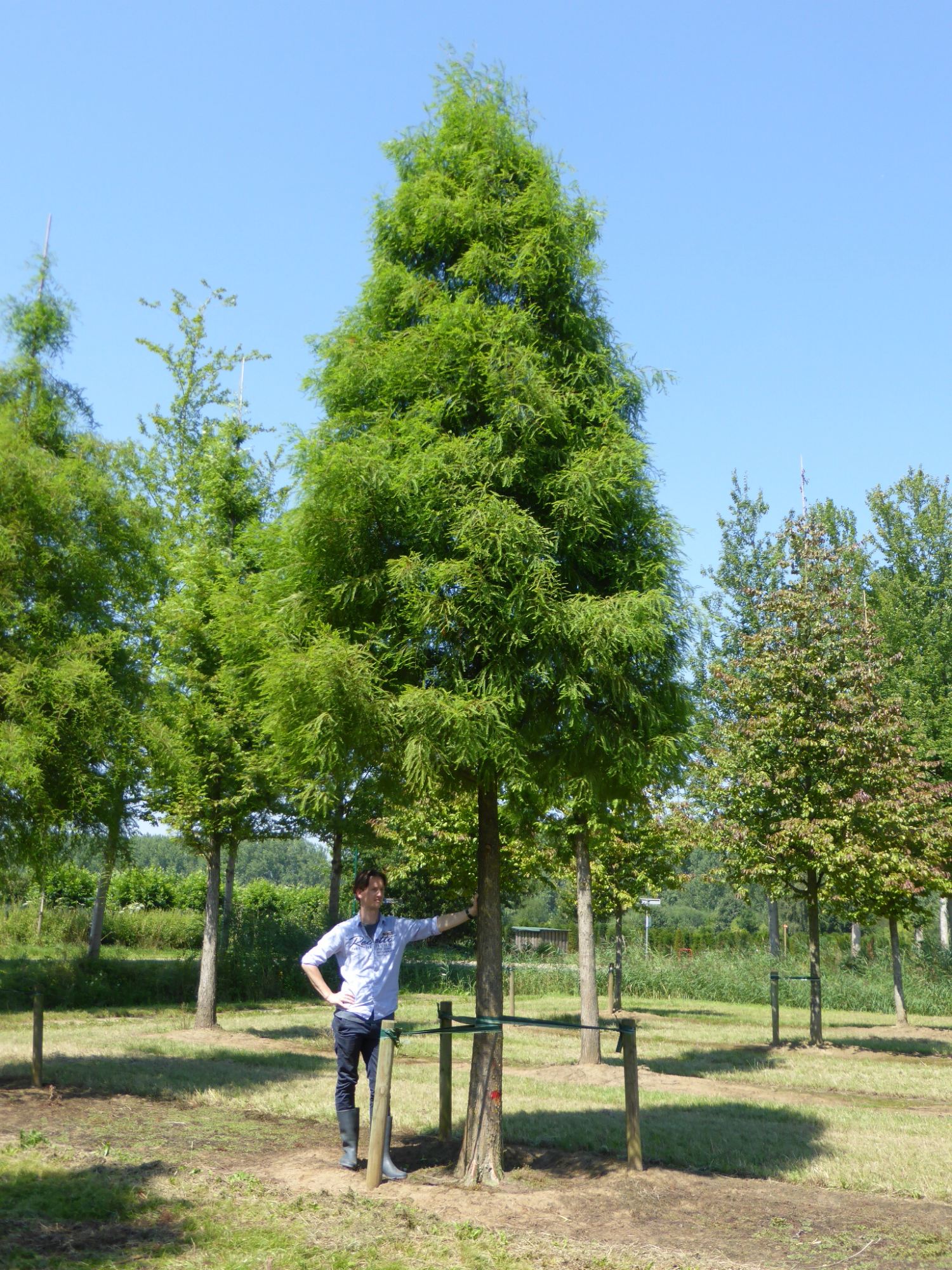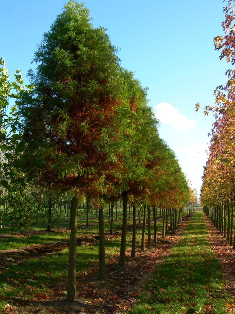 Hoogstam conifeer Hoogstam boom Beveerde boom Meerstammige boom Solitaire conifeer Zure grond Lemige grond Veengrond Zandgrond verdraagt halfverharding Lichtminnend Bestand tegen vorst (WH 1 t/m 6) Kan op natte grond Bestand tegen lange overstromingen Bestand tegen korte overstromingen Bestand tegen wind Smal Piramidiaal 1ste grootte, boom hoger dan 12m Halfopen kroon Groen Gemiddelde groeisnelheid Alle herfstkleuren Niet giftig (gewoonlijk) Toekomstboom