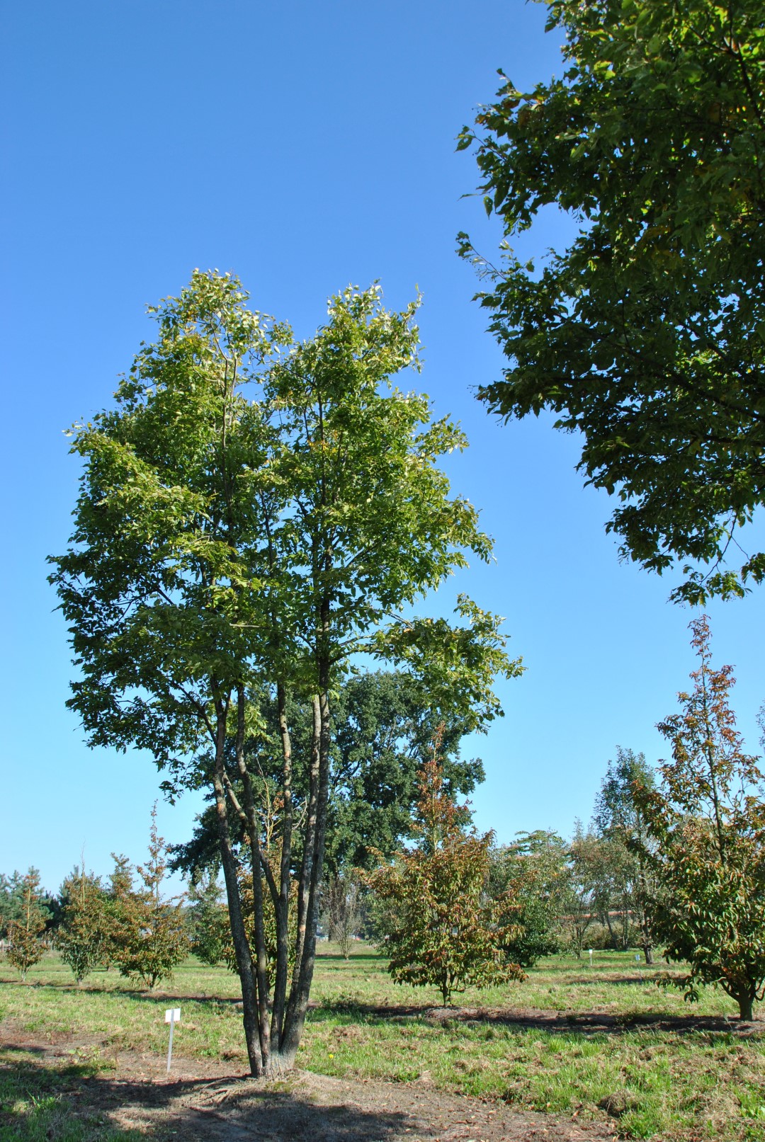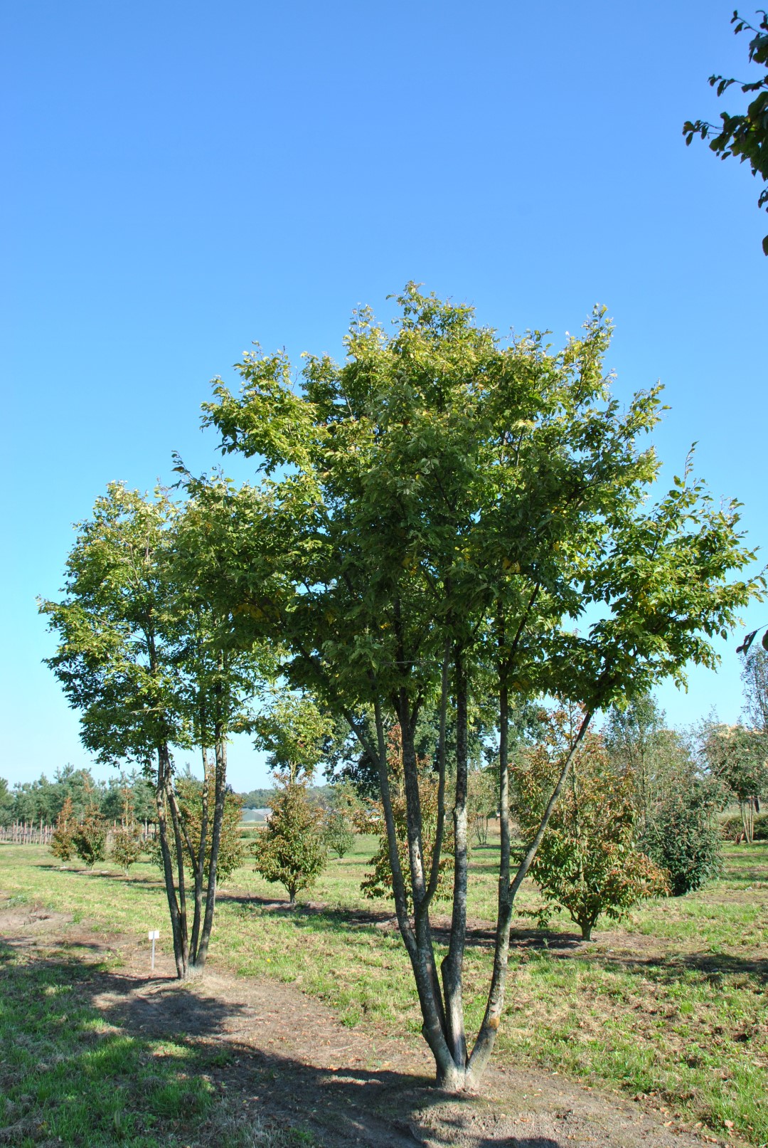 Meerstammige boom Kleigrond Lemige grond Veengrond Zandgrond verdraagt verharding Bestand tegen wind Breed Piramidiaal 3de grootte, boom tot 6 meter Dichte kroon Groen Wit Juli Gemiddelde groeisnelheid Opvallende bloei Alle herfstkleuren Drachtboom voor bijen Waardboom voor vlinders Niet giftig (gewoonlijk) Geurende bloemen