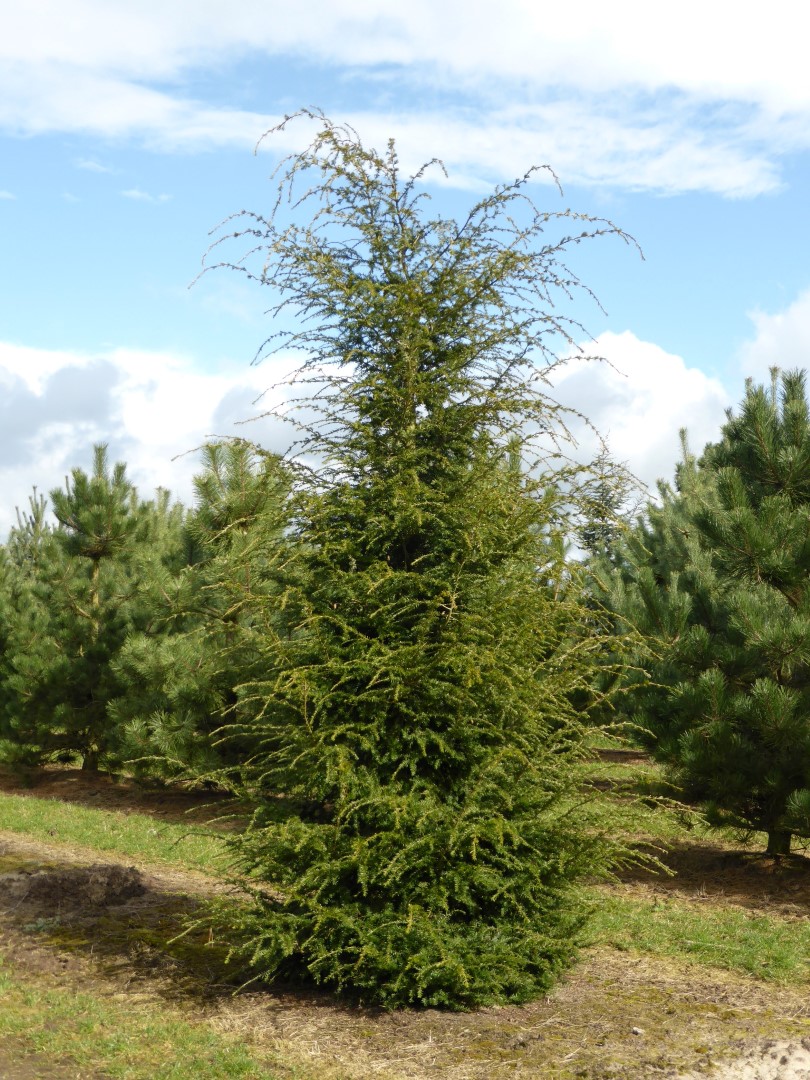 Hoogstam conifeer Hoogstam boom Haagplant Meerstammige boom Solitaire conifeer Zure grond Lemige grond Veengrond Zandgrond verdraagt geen verharding Bestand tegen vorst (WH 1 t/m 6) Schaduwdragend Breed Piramidiaal 1ste grootte, boom hoger dan 12m Halfopen kroon Groen Grijsgroen Geelgroen Gemiddelde groeisnelheid Niet giftig (gewoonlijk)
