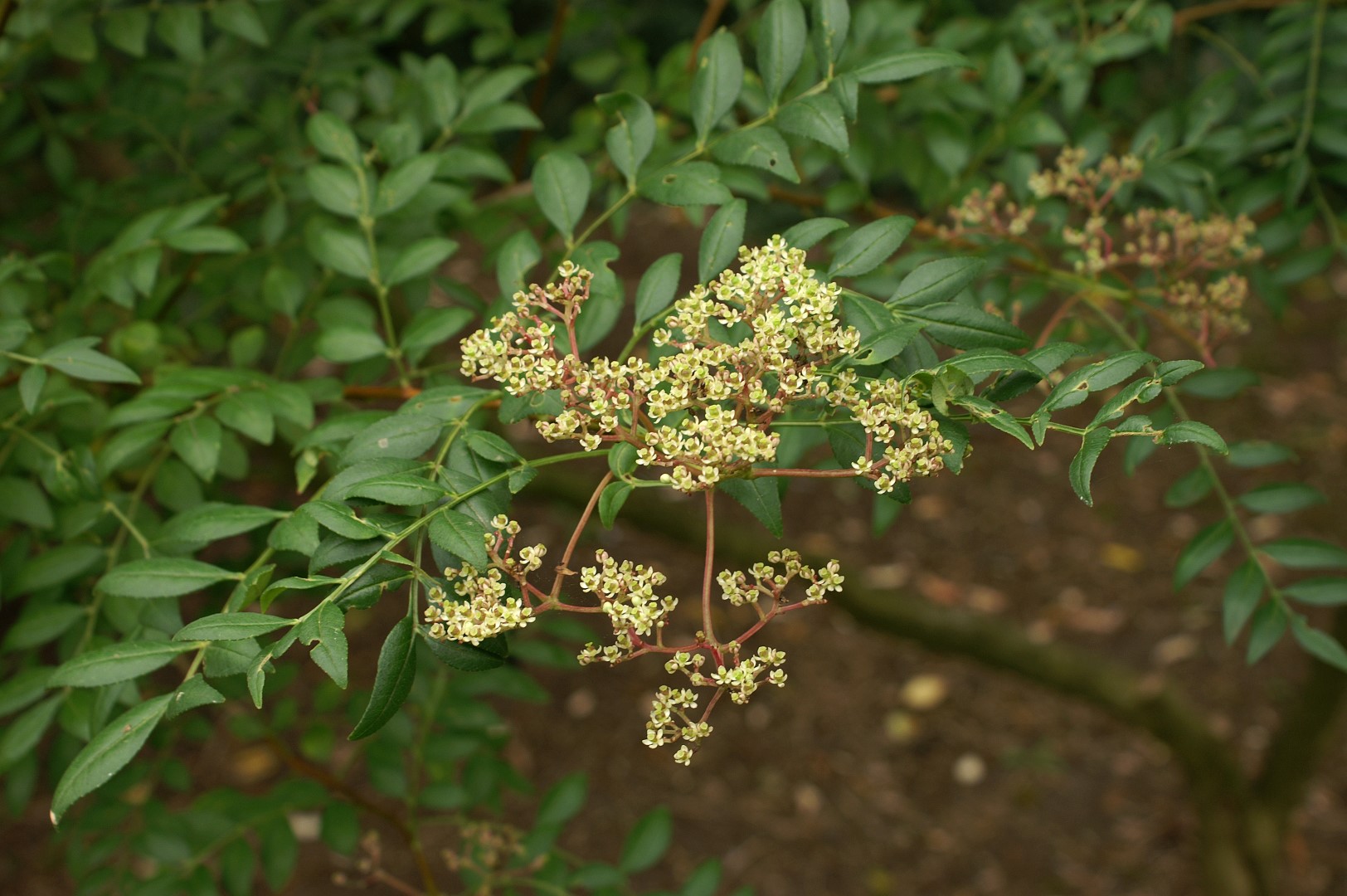 Vanuit een struikvorm tot kleine, soms meerstammige boom met een ronde kroon uitgroeiend. De eenjarige twijgen zijn kort, bijna wasachtig behaard en later kaal. Ze zijn bruin en onder iedere knop zijn twee platte doorns geplaatst. De oude bast is grijs, waarop soms de oude doorns als kleine bulten zichtbaar zijn. De sierlijke, oneven geveerde bladeren zijn 7 tot 15 cm lang en bestaan uit 11 tot 23 ovale deelblaadjes. De bladranden zijn fijn getand en de top van het topblaadje is ingesneden tot uitgerand. De bladspil is behaard en bezet met enkele fijne stekels aan de onderzijde. Het blad kleurt geel in de herfst. Compacte bundels groene bloemen openen in juni. Ze worden gevolgd door kleine roodachtige bolronde vlezige doosvruchten. Deze bevatten zwarte zaden. De zaden worden in Japan gemalen en als peper in gerechten gebruikt. Een parkboom die weinig eisen aan de bodem stelt.