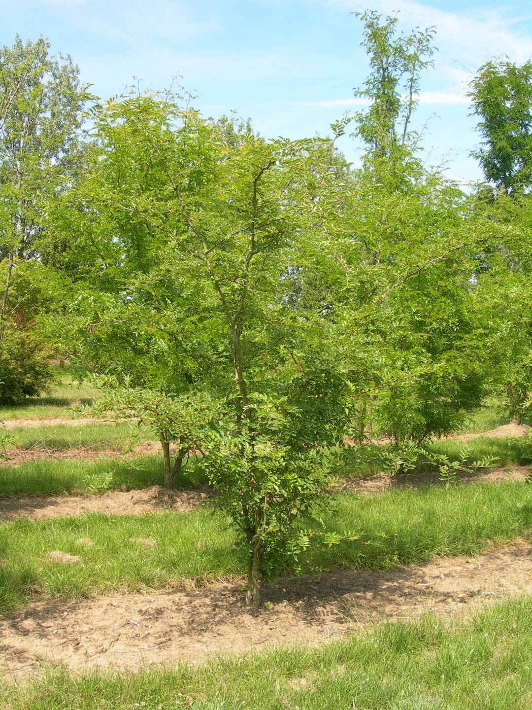 Hoogstam boom Meerstammige boom Kleigrond Lemige grond Voedselarme grond Veengrond Zandgrond verdraagt geen verharding Bestand tegen vorst (WH 1 t/m 6) Bestand tegen wind Halfopen kroon Groen Groen Gemiddelde groeisnelheid Geveerd blad Alle herfstkleuren Waardboom voor vlinders Niet giftig (gewoonlijk) Grillig groeiend Sierlijke vruchten Ja