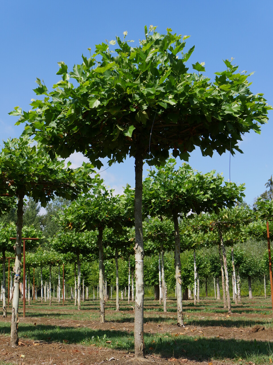Bij dakbomen vormt de kroon een horizontaal scherm. Dit doet hij niet van nature; bij dit soort vormbomen zijn tijdens het opkweken de takken bewust zo geleid. Om een dakboom goed in vorm te houden, moet hij minstens één keer per jaar worden gesnoeid, bij snelgroeiende soorten zoals dakplataan bij voorkeur zelfs twee keer per jaar. Dakbomen zijn ideaal voor het creëren van een gezellig schaduwterras of als natuurlijke zonwering bij een groot raam of openslaande deuren. Het horizontale bladerdak zorgt ’s zomers voor een knusse sfeer én voor extra privacy. In vergelijking met een overdekt terras zorgt zo’n groen bladerdak boven je hoofd ’s zomers ook voor meer koelte, omdat bomen niet alleen schaduw geven maar met de waterverdamping door het blad ook de lucht koelen. Bovendien geven de hier genoemde (bladverliezende) dakbomen alleen schaduw van het voorjaar tot in de herfst. In de winter - als het blad van de boom is- valt er weer zonlicht door de kale kroon heen. Vooral in kleine tuinen kunnen dakbomen daarom een uitkomst zijn!
