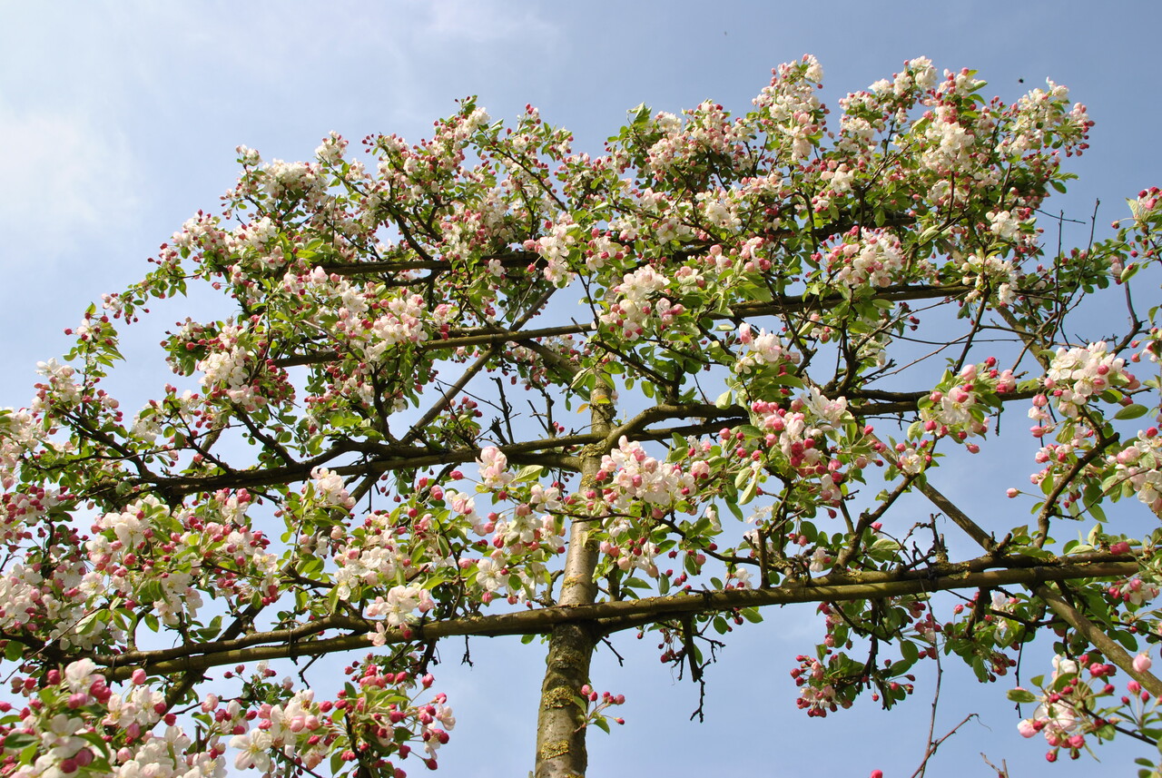 Een rij leibomen wordt ook wel omschreven als een haag op poten. Net als een gewone haag zorgen ze voor veel privacy, maar nu op hoogte. Zo’n groen bladerscherm voorkomt dat de buren vanaf de eerste verdieping je tuin of woning binnenkijken. Maar andersom werkt het uiteraard ook; met leibomen of schermvormen kun je bebouwing aan het zicht onttrekken of bijvoorbeeld een blinde muur ‘aankleden’. Tegen een zonnige zuidmuur staat een leiappel- of perenboom erg decoratief, bovendien geeft deze heerlijke vruchten. Bij boerderijen werden van oudsher leilinden geplant om de zon te weren; dit zorgde ’s zomers voor koelte. Vooral met de huidige klimaatverandering is zo’n natuurlijk zonnescherm met leibomen (of schermvormen) zo gek nog niet! Dat kan zelfs in kleine tuinen, want dit type bomen neemt maar weinig ruimte in.