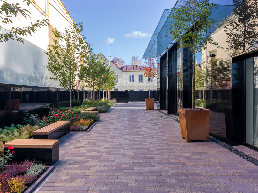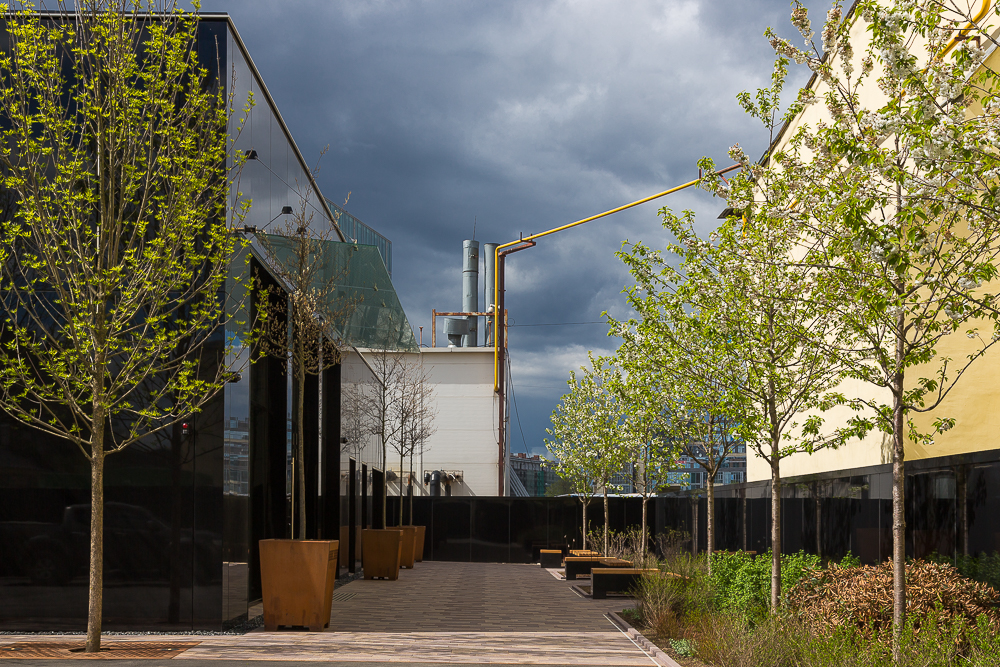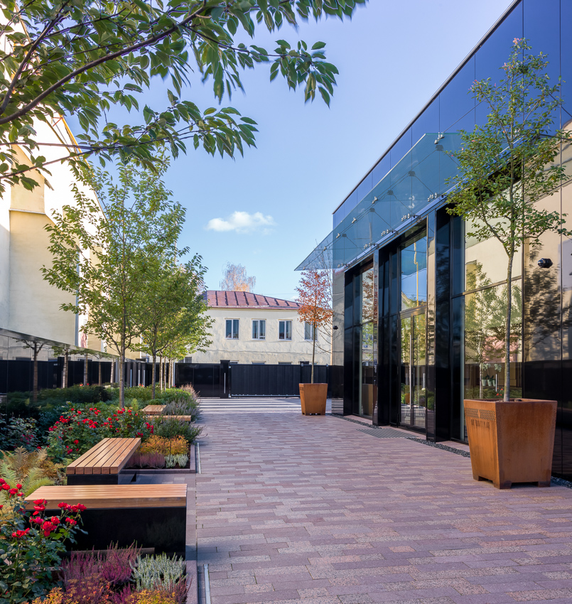 Voor het aankleden van Business Centre Trinity in Sint-Petersburg heeft Van den Berk in 2015 onder andere Tilia cordata 'Böhlje' 45-50 geleverd. De bestrating voor het gebouw werd verfraaid met moderne zitelementen die tevens als bomenbak dienen voor Betula pendula 'Zwitsers Glorie'. Mooi groen helpt het nieuwe moderne gebouw in de bestaande omgeving te integreren.