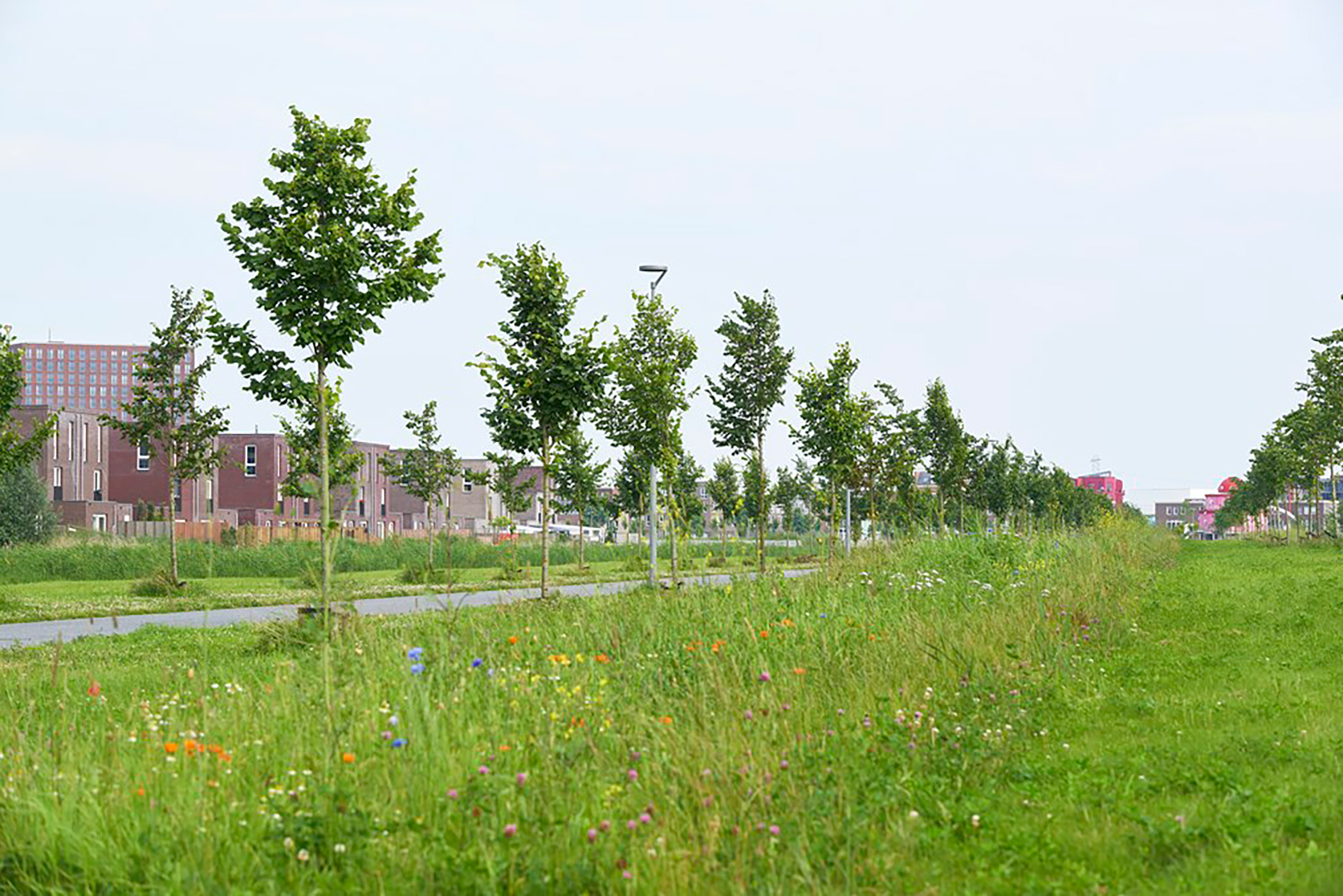 Maar liefst 1200 stuks Tilia platyphyllos in de maat 18-20 werden er geleverd en geplant voor de inrichting van het Cascadepark, een nieuwe wijk van Almere Poort. Cascadepark West strekt zich uit over een lengte van anderhalve kilometer en beslaat een oppervlakte van ongeveer 25 hectare. Het langgerekte park is herkenbaar aan de ‘Groene Slinger’; een honderd meter brede strook met bomen, speel- en picknickweiden en brede paden voor wandelaars, fietsers, skaters en joggers, omzoomd door water. Er is ruimte voor kunst en voor kleine manifestaties. Verspreid door het park is er ruimte voor bijzondere (woon)bebouwing.