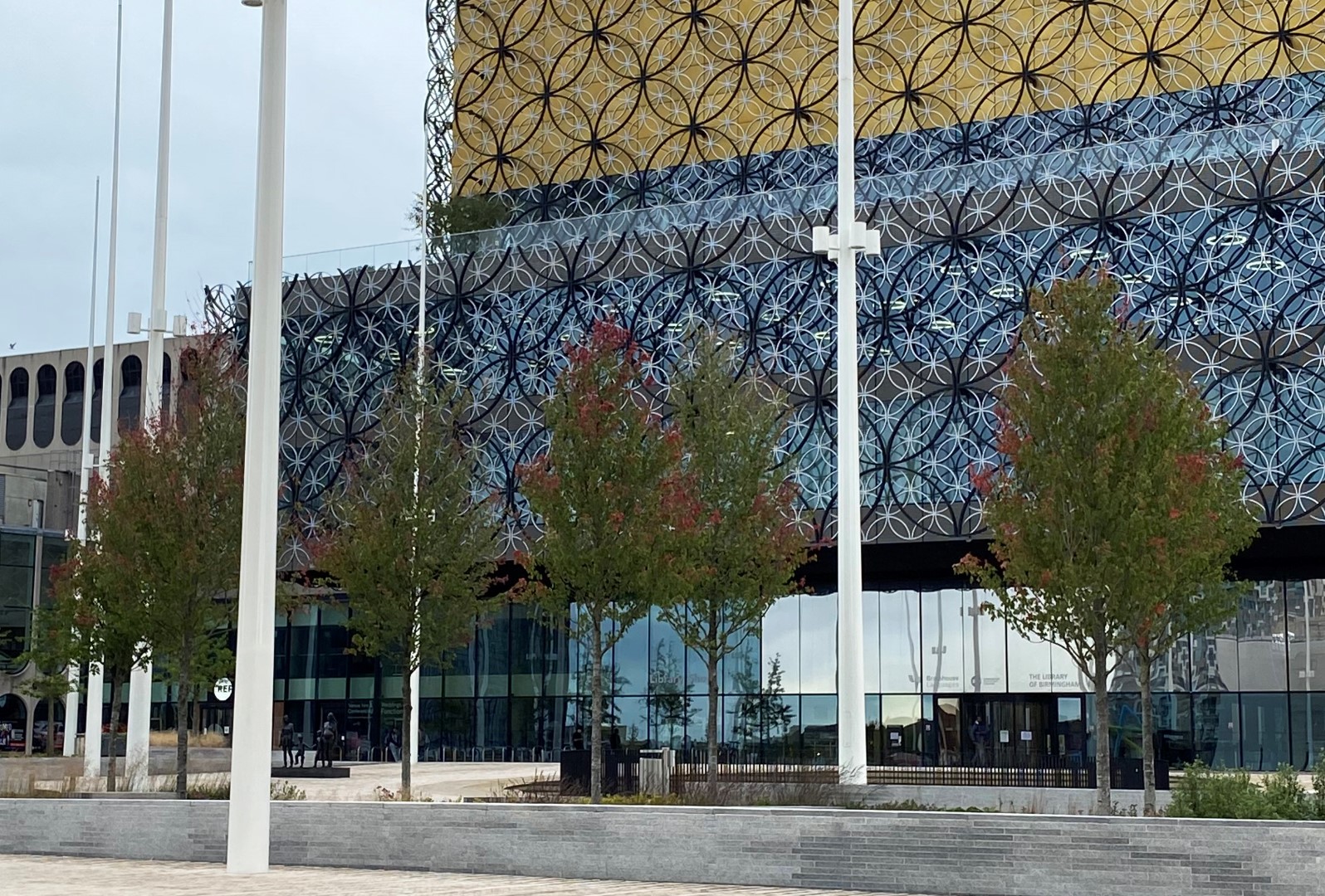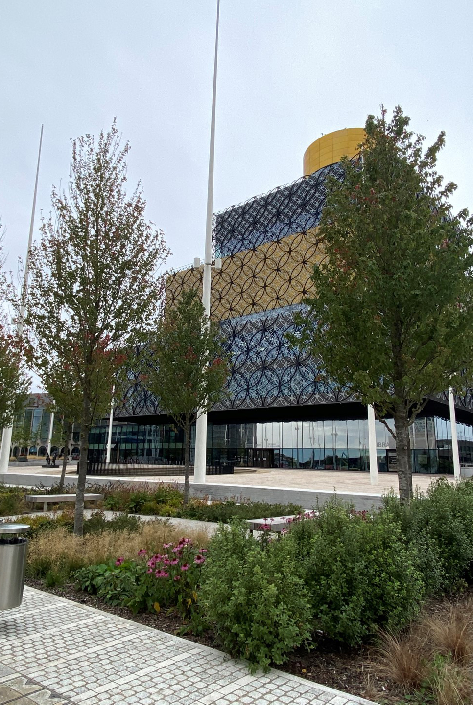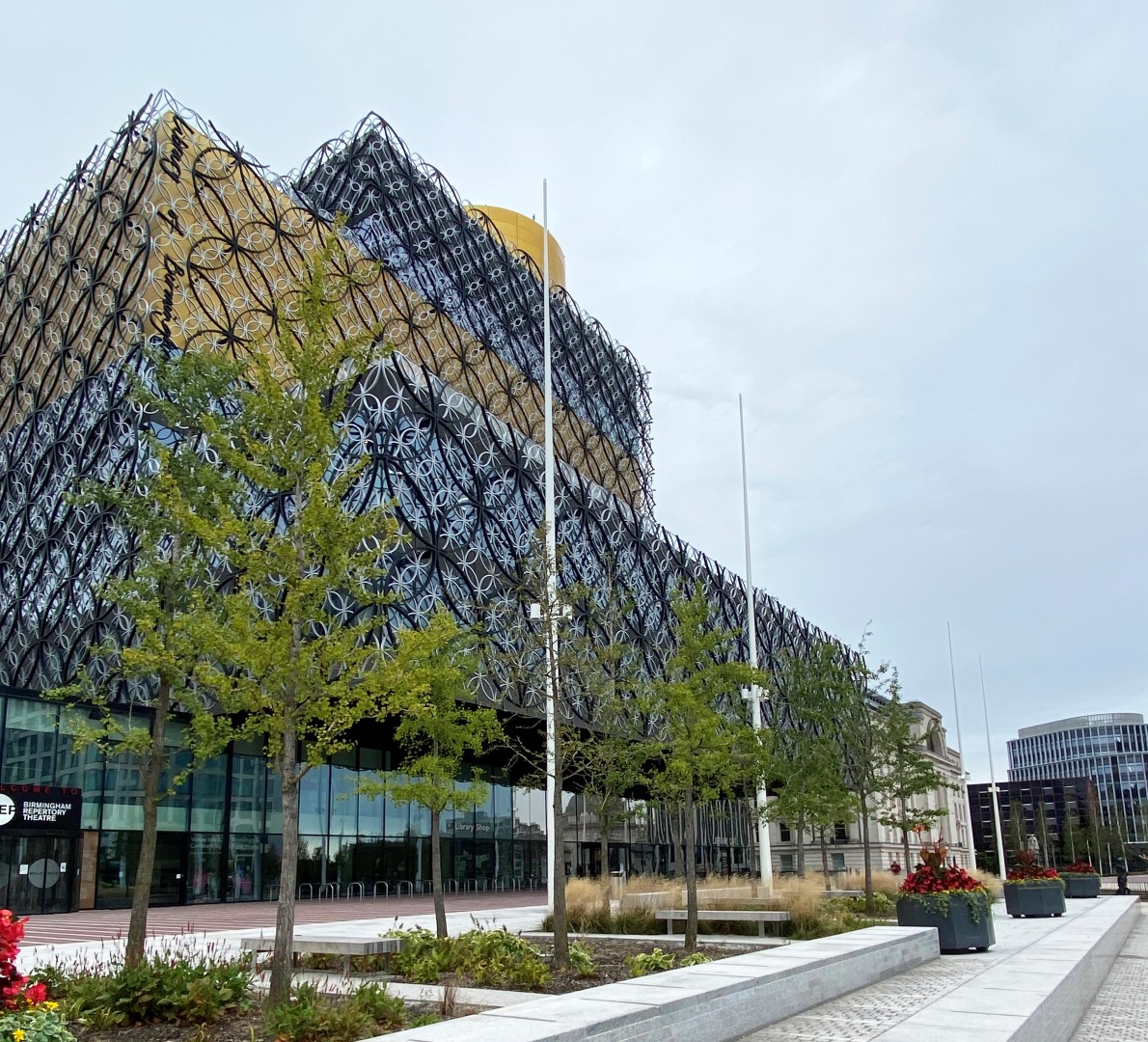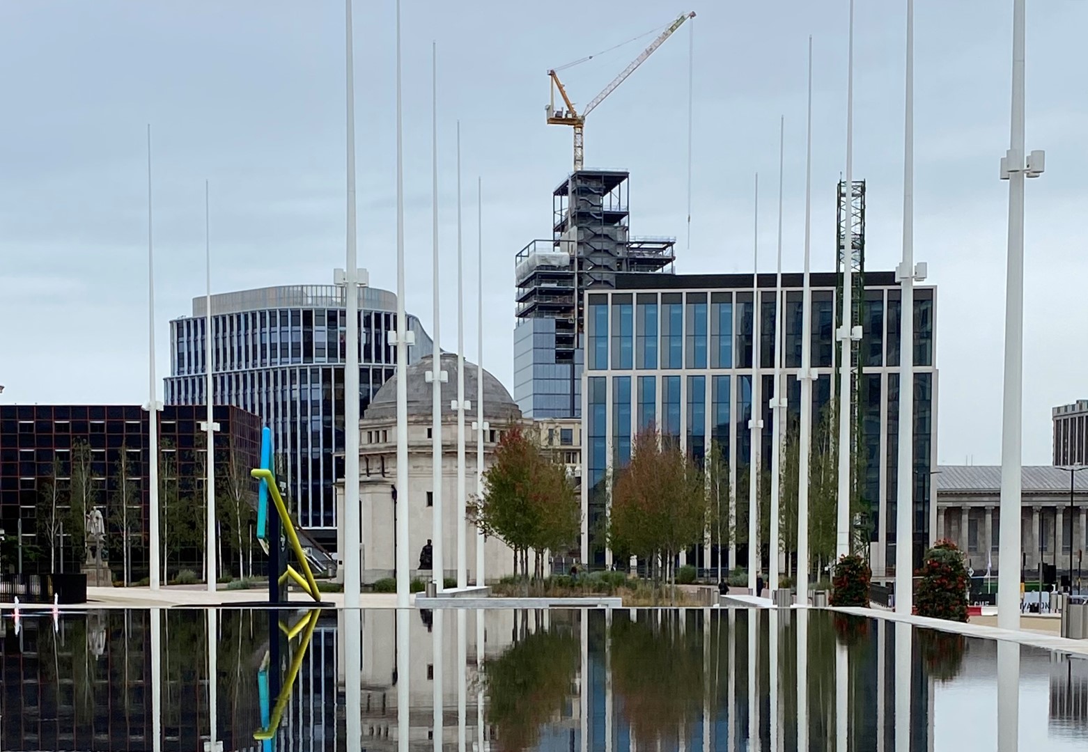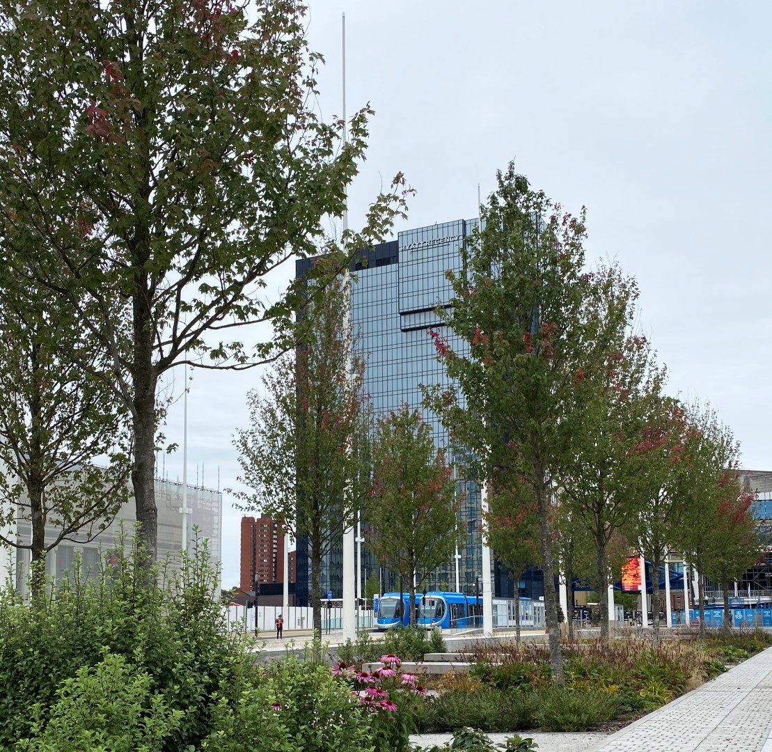 Een prachtige combinatie van bomen, water en moderne architectuur in het historisch centrum van Birmingham. Acer rubrum 'Sun Valley' , Ginkgo biloba en Betula pendula, alle in de maat 50-60, zijn in de winter en voorjaar 2018 door Killingley NT geplant. De foto's zijn gemaakt in augustus 2019.