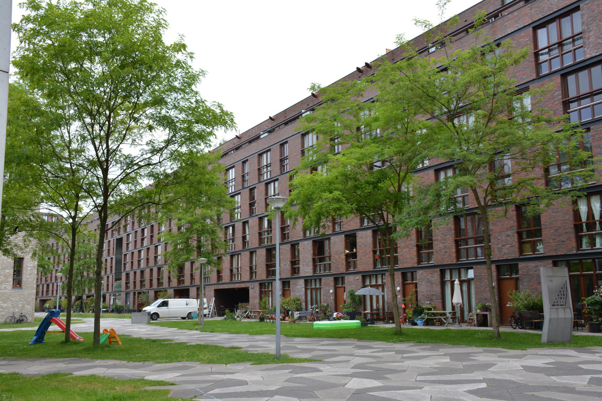 Tot eind vorige eeuw vormde het voormalig overslagterrein van Van Gend & Loos in Amsterdam een rafelig niemandsland. In de lange bocht van de spoorlijn Amsterdam-Utrecht staat nu een appertementgebouw met 305 woningen. Dit fungeert als akoestisch en visueel schild voor het woonpark dat erachter ligt. In het groen staan zestien losse appartementenblokken met in totaal 246 woningen.