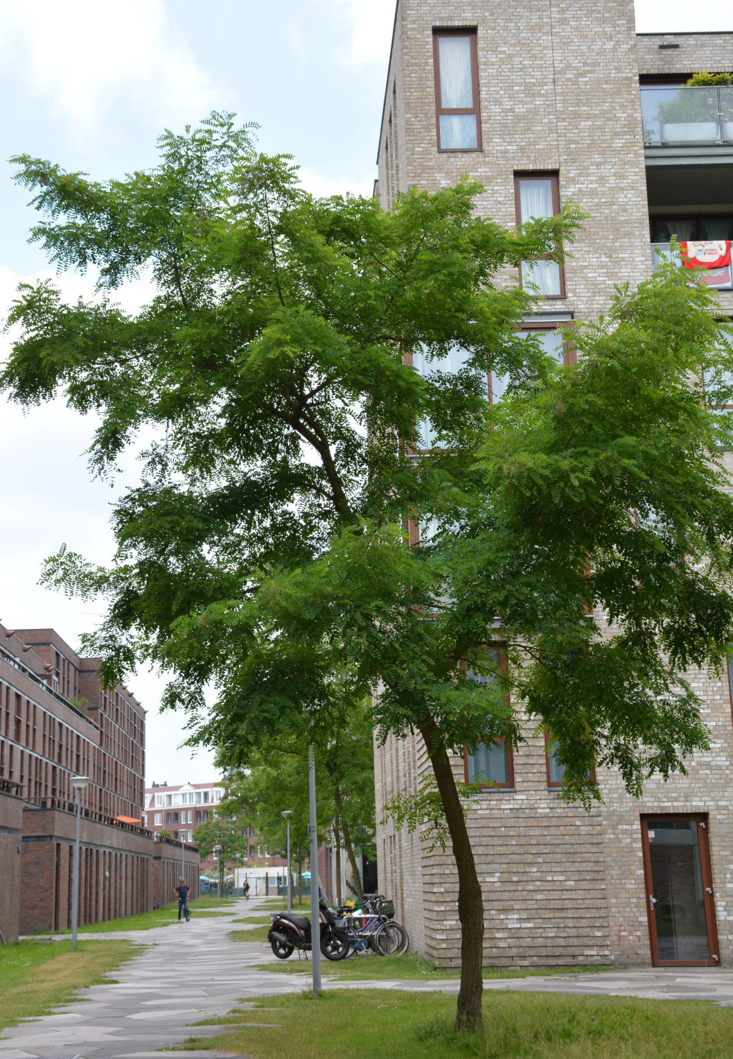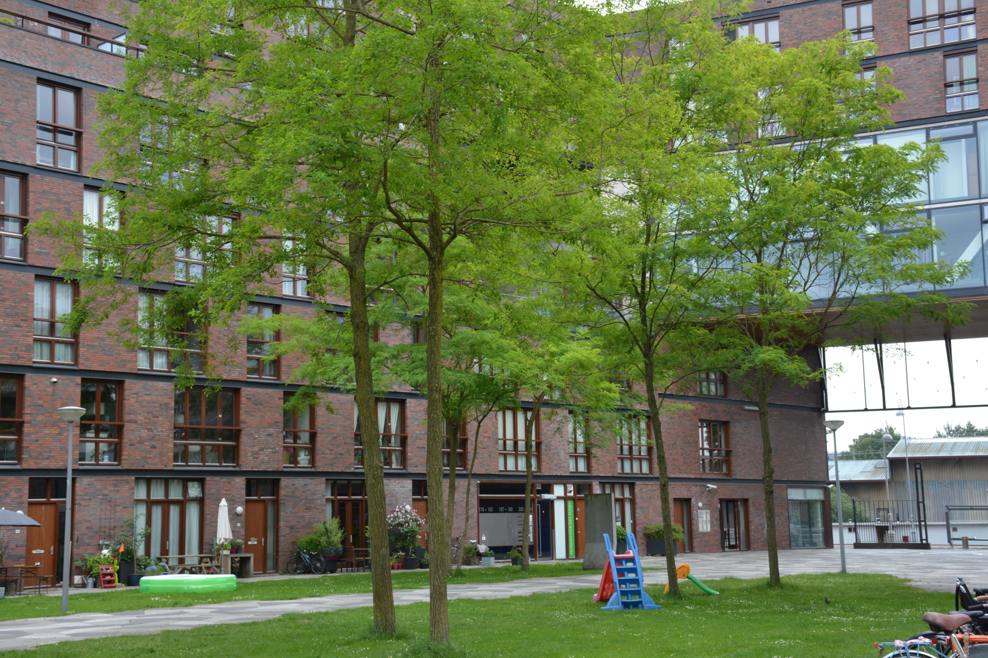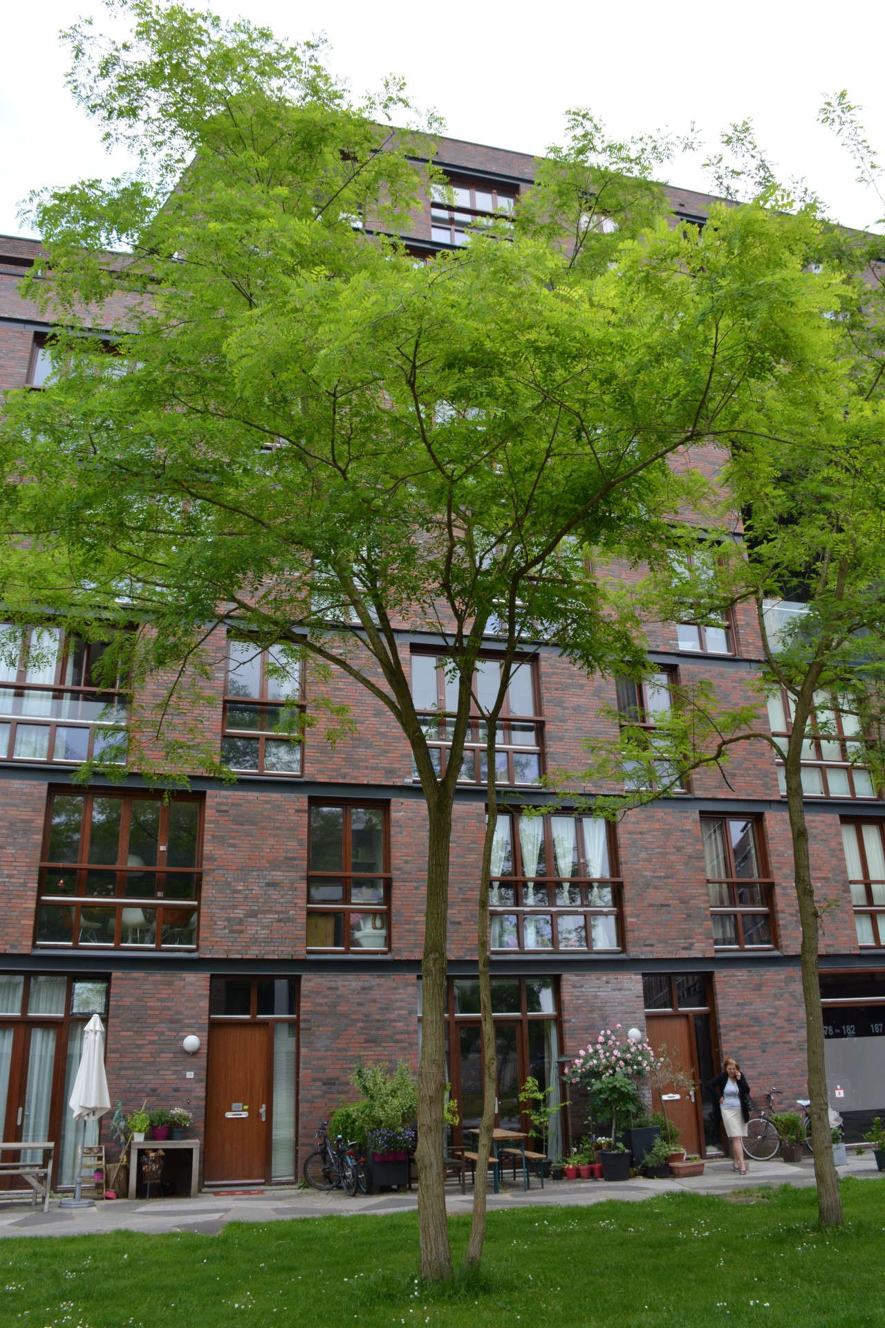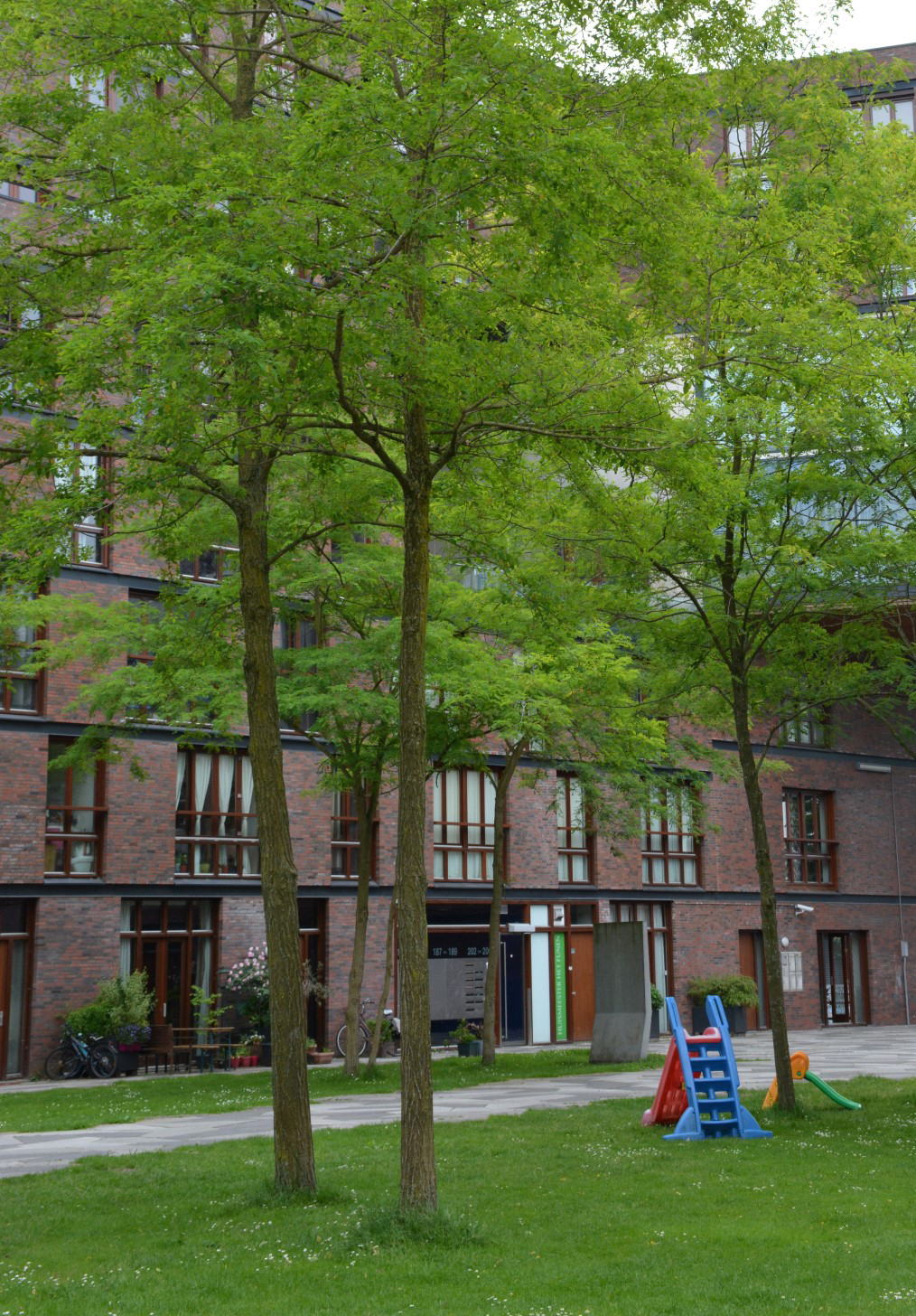 LANDLAB tekende voor het natuurlijke, vloeiende ontwerp van de buitenruimte. De parkachtig inrichting wordt versterkt door het gebruik van grillig groeiende bomen. In 2010 werden Robinia pseudoaccacia 'Sandraudiga', 'Bessoniana en 'Casque Rouge' geplant. Robinia's zijn goed droogte-resistent en goede drachtbomen. Samen met de natuurlijke groeiwijze zijn ze daardoor heel geschikt voor dit project.