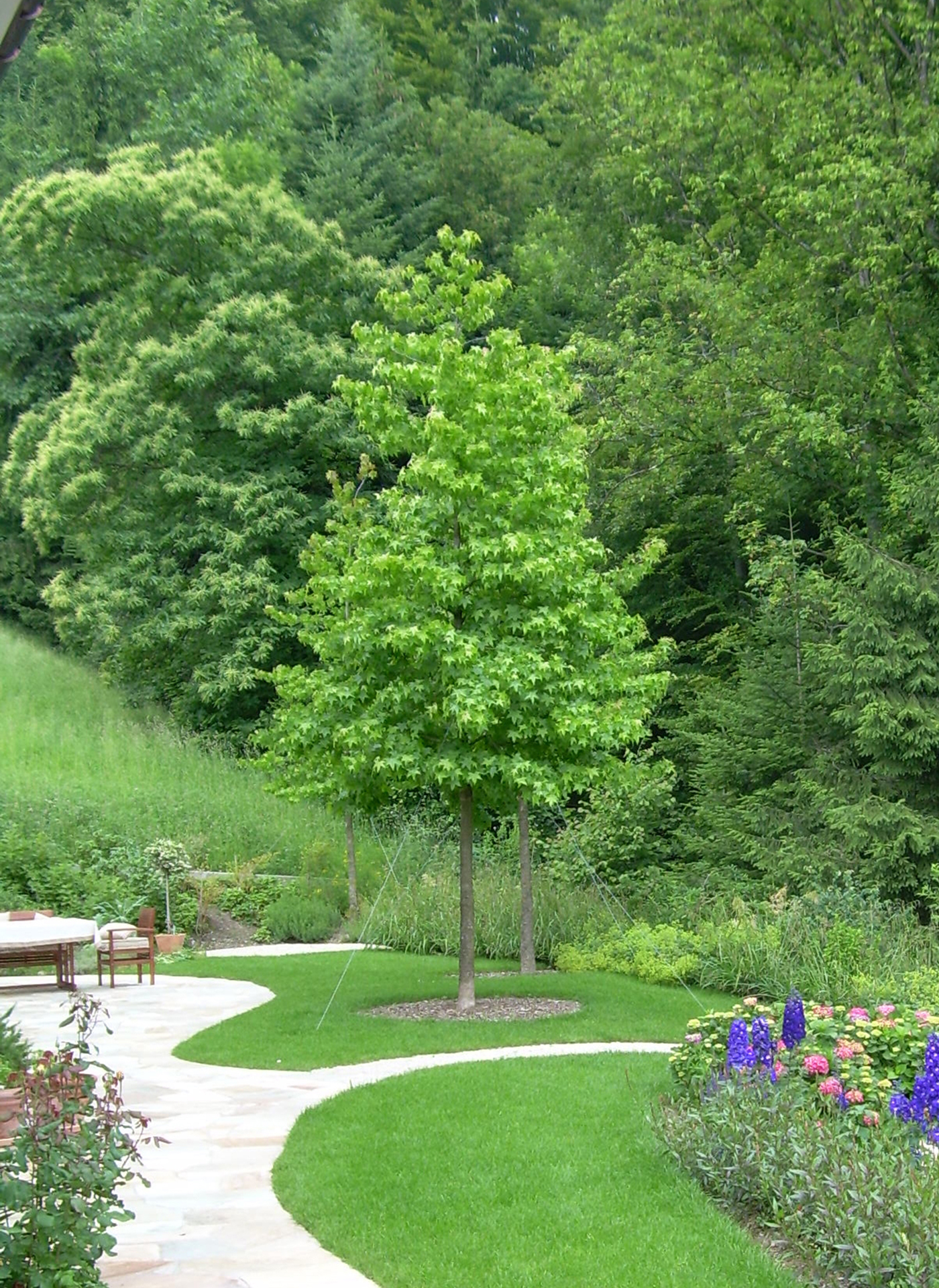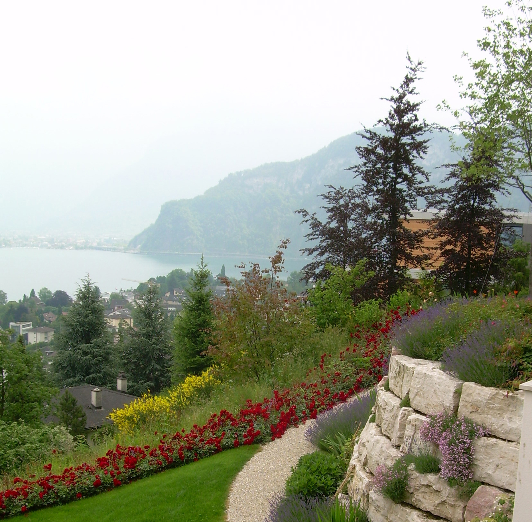 Deze schitterende tuin van een tegen een berghelling gelegen villa werd aangeplant in het voorjaar van 2005. De Fagus sylvatica 60-70, Lirodendron tulipifera 60-70 en Quercus coccinea 70-80 zijn hier geplant.