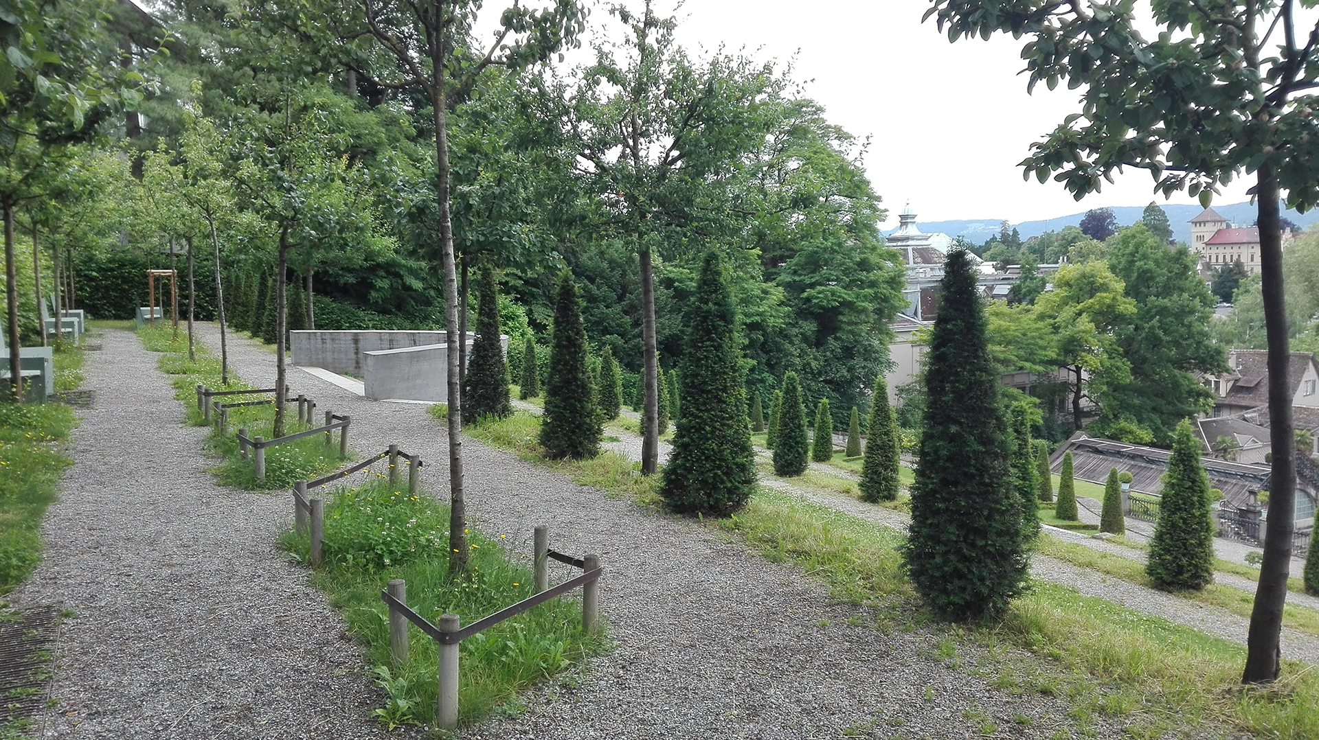 Deze baroktuin gelegen op de Rechberg in Zürich werd tussen 2012 en 2013 volledig gerenoveerd naar een plan van Hager Partner AG. De tuin is omgeven door 160 haagelementen van Tilia cordata. Deze lindes werden hiertoe reeds jarenlang, op contract, voorgevormd zodat ze bij aanplant de door de architect gewenste vorm hadden. Dat geldt ook voor de 47 Taxus baccata kegelvormen.
