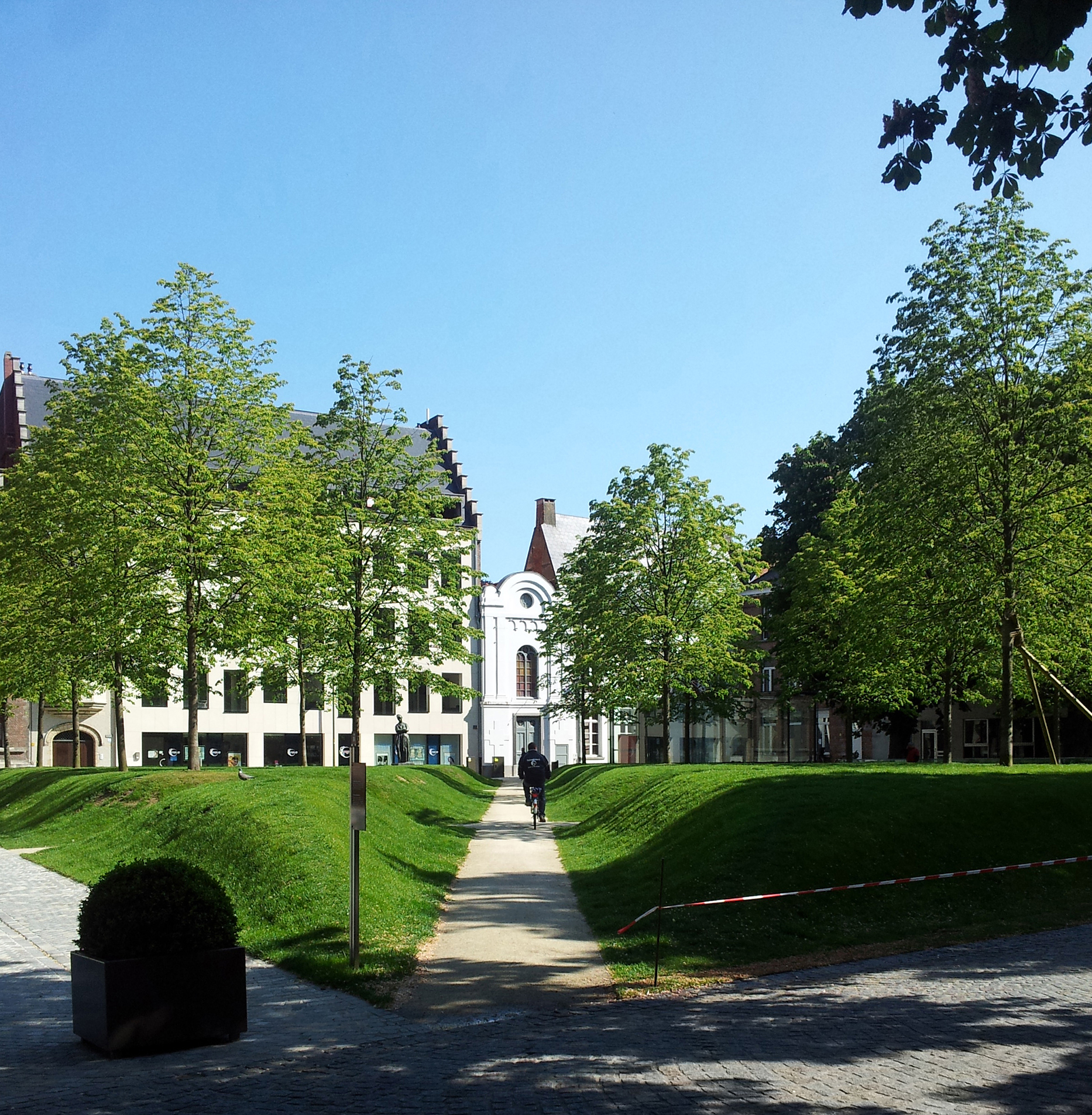 De markante 97.5 meter hoge Sint Romboutstoren in Mechelen staat op de werelderfgoedlijst van UNESCO. Enige jaren geleden werd het terrein er omheen opnieuw aangelegd. Bovenop een ondergrondse parkeergarage kwam een, op maaiveld gelegen, daktuin. In december 2011 zijn in deze tuin 14 kleinbladige lindes, Tilia cordata ‘Greenspire’, geplant. De bomen hadden bij aanplant een stamomtrek van 50-60-70 cm.