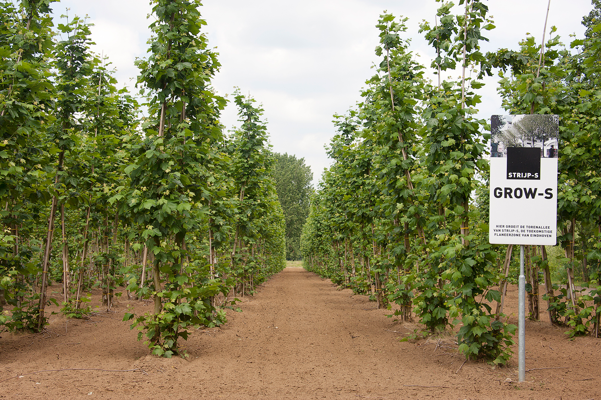 Strijp-S was een binnenstedelijk fabrieksterrein van Philips grenzend aan de binnenstad van Eindhoven. Het 27 ha grote bedrijventerrein is sinds het begin van de vorige eeuw door Philips gebruikt voor productie en ontwikkeling van elektronische producten en is betiteld als een industrieel erfgoed. Eind vorige eeuw werd, nadat Philips naar een nieuwe campus aan de rand van Eindhoven was vertrokken, besloten een nieuwe invulling aan het gebied te geven. Tegenwoordig herbergen de oude fabrieksgebouwen woningen en zijn er bedrijven uit de creatieve sector gevestigd. West-8 tekende voor het ontwerp van de buitenruimte en had een bijzondere visie. De dominant aanwezige Torenallee moest een wandel/fiets boulevard worden met een dubbele rij vergaffelde platanen. Aangezien de plannen al in vroeg stadium werden ontwikkeld was het mogelijk deze bomen speciaal, volgens specificaties van de architect, op contract te kweken. In 2007 is Van den Berk gestart met het kweken van 365 tweestammige platanen met de bedoeling ze, nadat de stammen voldoende waren gedikt, nog tweemaal te vergaffelen op respectievelijk 5 en 10 meter. In 2012 was de eerste vergaffeling voldoende sterk en waren de bomen klaar voor aanplant. De laatste vergaffeling zal over een aantal jaren op locatie gerealiseerd worden zodra de bomen voldoende dikte en lengte gevormd hebben. KWS-Eindhoven was opdrachtgever voor dit project. Van Kessel Sport en Cultuurtechniek heeft de bomen aangeplant.