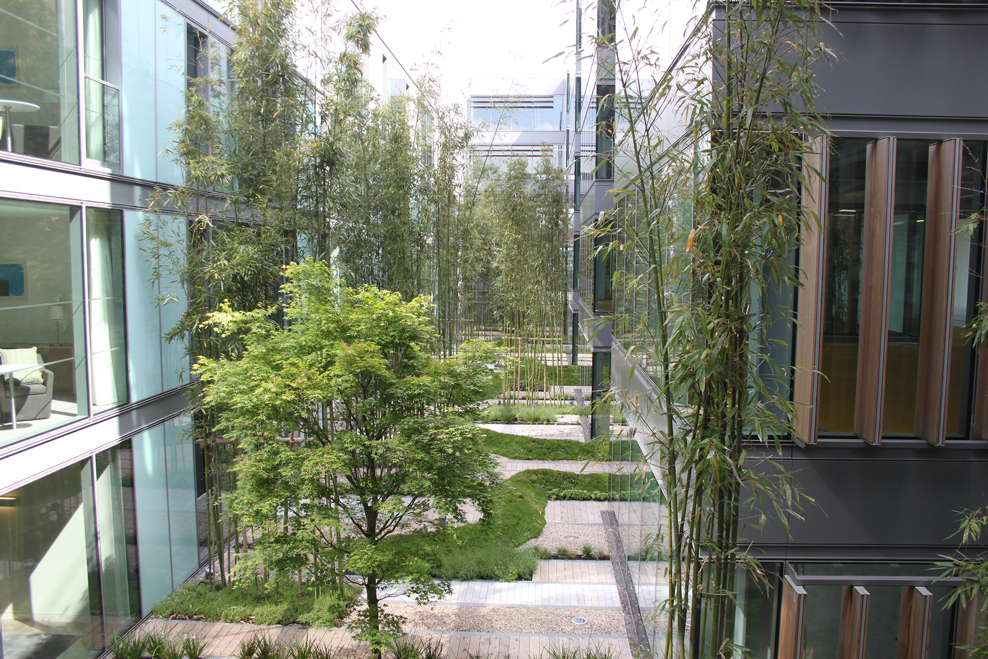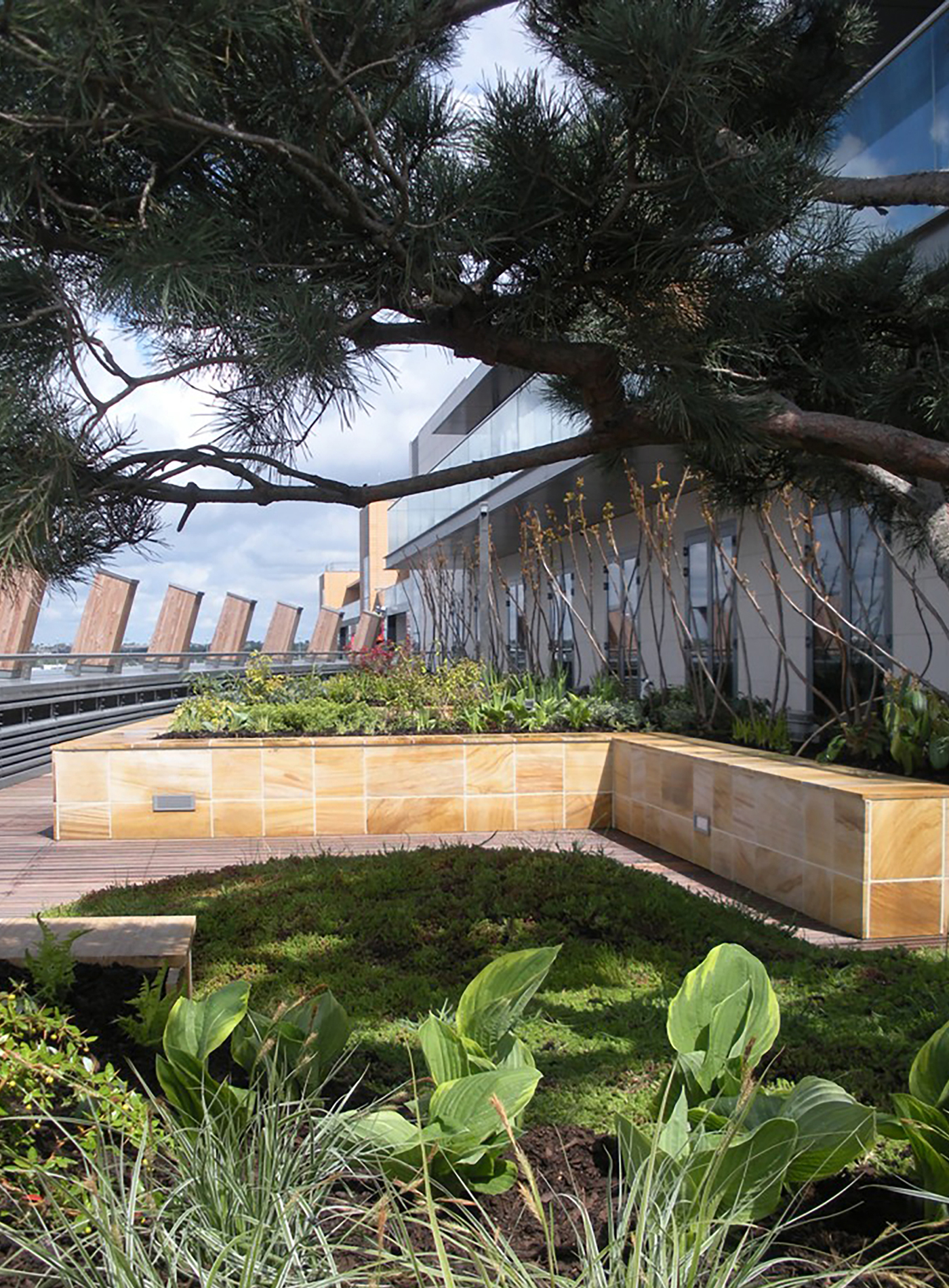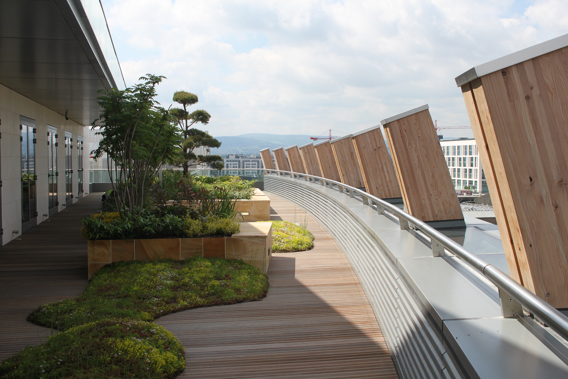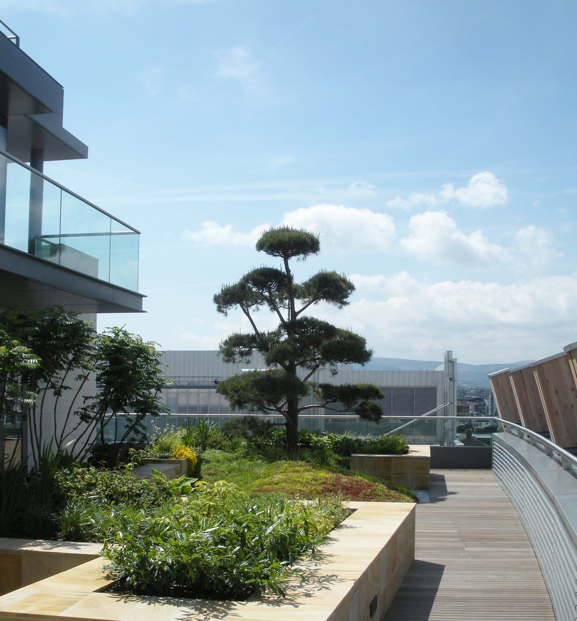 Spencer Docks, een voormalig haventerrein van CIÉ, werd nadat het in ongebruik was geraakt getransformeerd tot een residentiele wijk. De buitenruimte van dit nieuwe stadsontwikkelingsproject kreeg veel verschillende niveaus: het kenmerkt zich door patio’s en dakterrassen. Mike Martin tekende voor het ontwerp en koos als beplanting voor o.a. meerstammige Amelanchier lamarckii en Betula pendula, Platanus hispanica, Styphnolobium japonicum (sophora japonica), en Magnolia loebneri ‘Merill’. Van den Berk leverde ook de metershoge bamboes. Peter O’ Brien Landscaping verzorgde de aanleg.